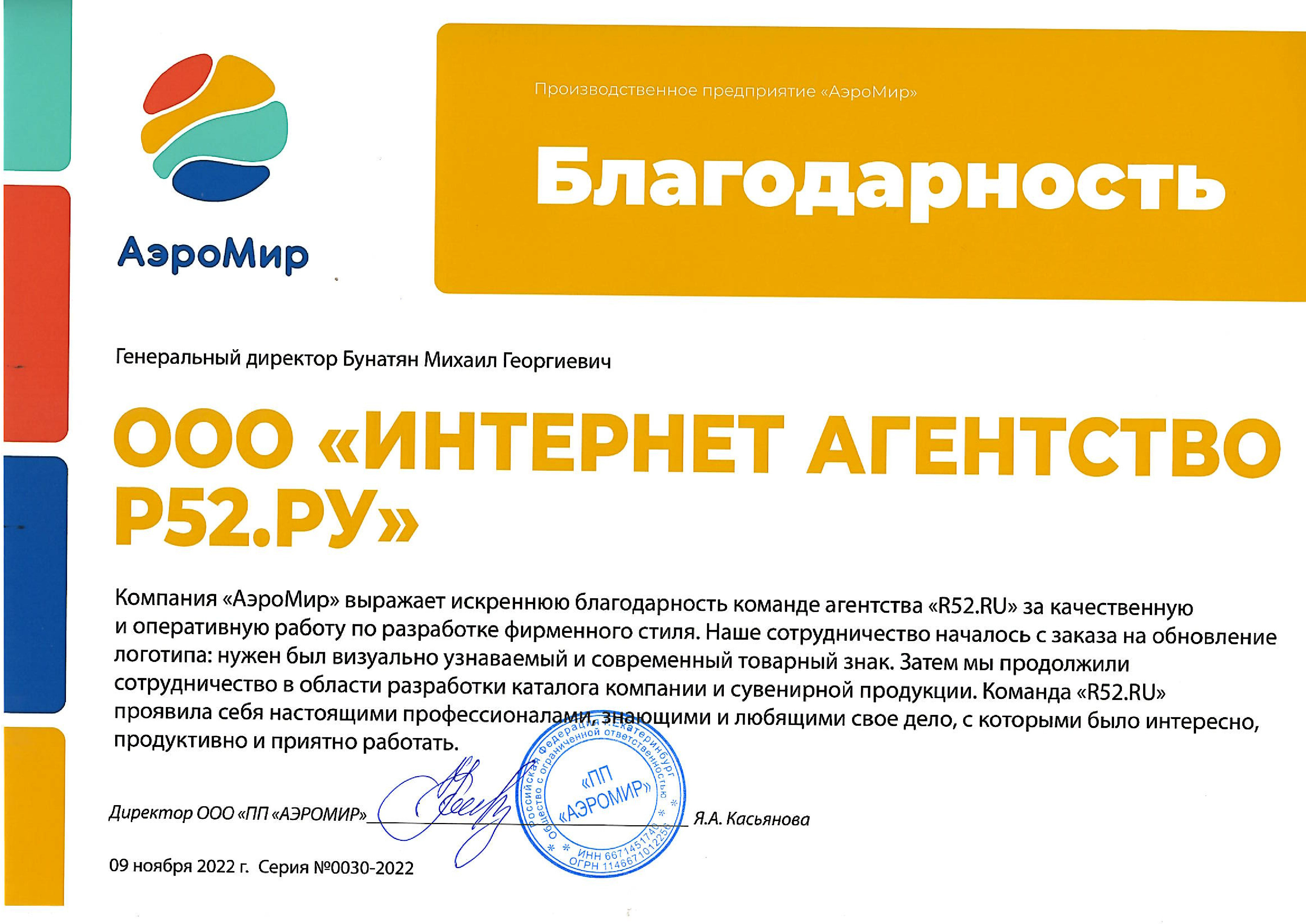 Мы очень довольны сотрудничеством с «Р52.РУ» и хотим рекомендовать их как профессиональную, надежную и ответственную компанию.